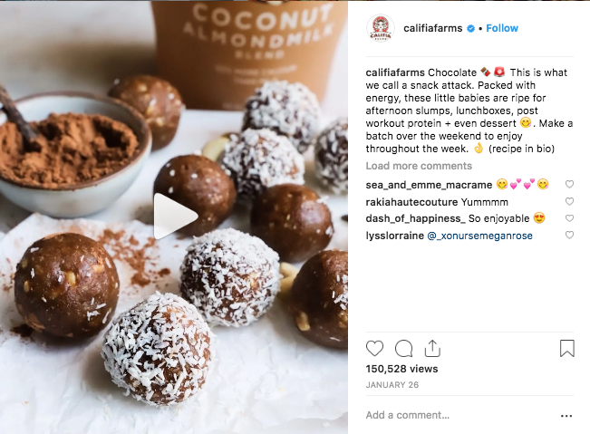 Califia Farms is a natural beverage company who recently won top honors in the global packaging design category from Beverage World Magazine. Instagram is a perfect platform to show off their attractive packaging to their more than 211k followers.