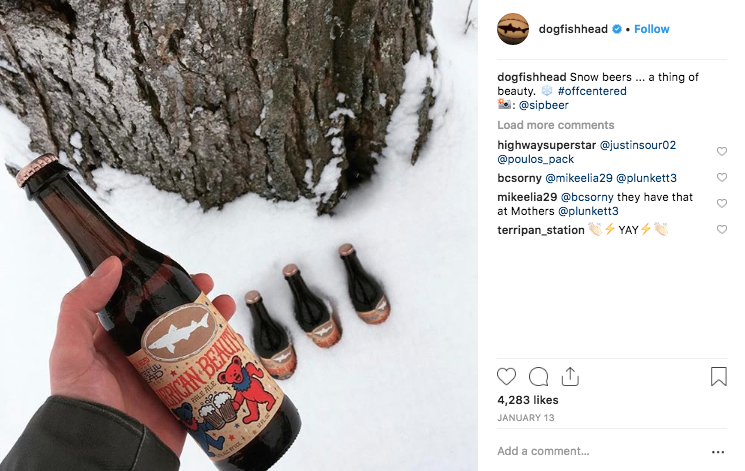 Dogfish Head Brewery uses stunning photography, fun captions and various hashtags to promote their beers to more than 360k followers. They also share up-to-date happenings, new product releases and fun events at their breweries to engage and build a relationship with their audience.