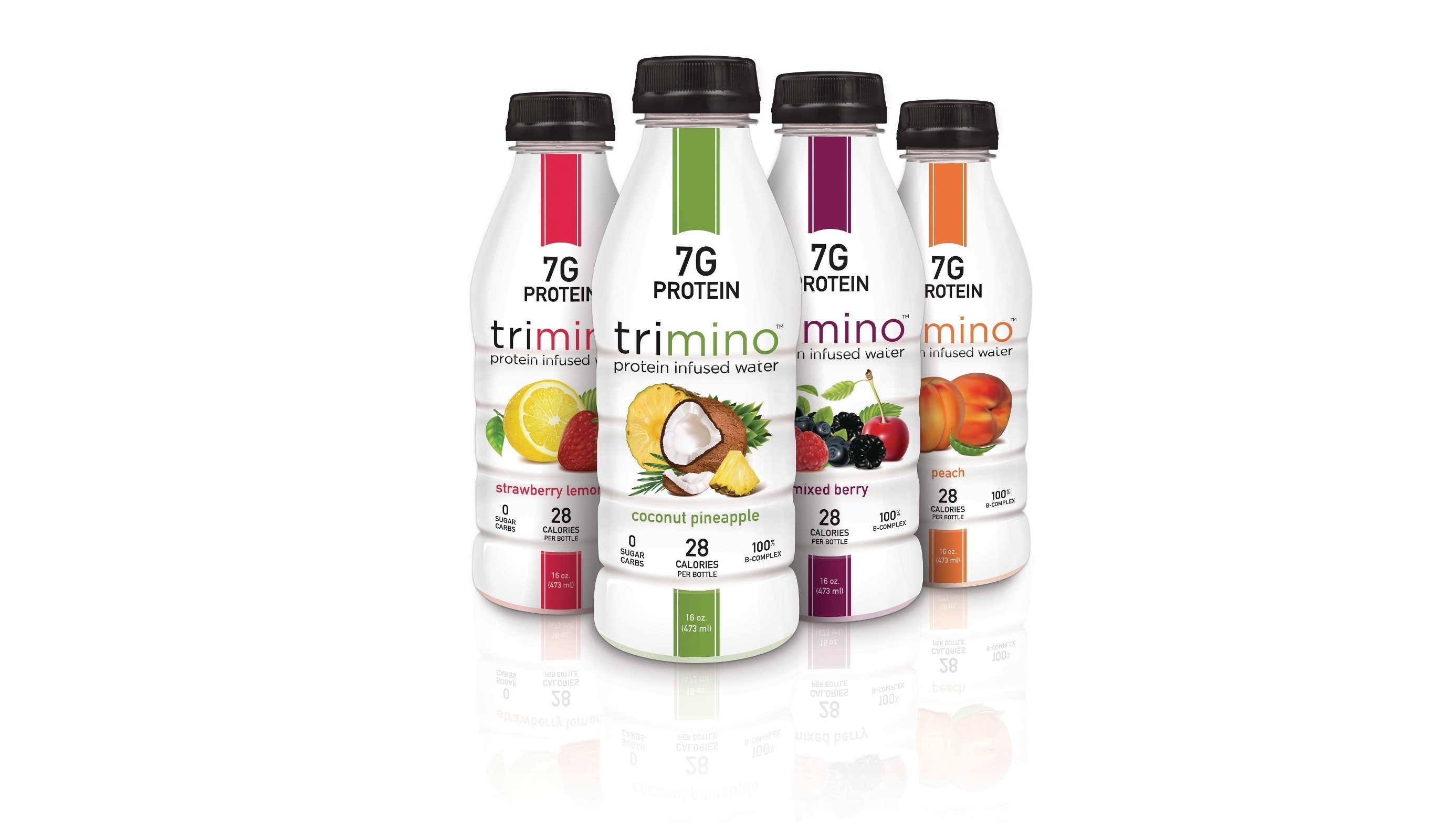 “Protein is among the top trends in the beverage industry and trimino, with 7 grams of whey protein isolate and only 28 calories, delivers what consumers want from a functional beverage. This product is specifically developed to help meet their exercise, diet and lifestyle goals: protein and B-complex vitamins provide natural energy and restore and maintain muscle, curb appetite, and provide hydration.