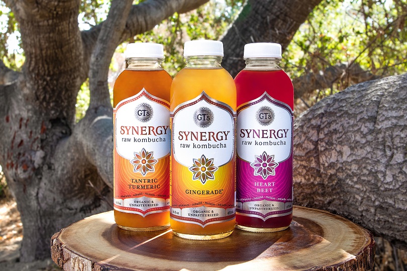 GT’s Synergy root-centric Kombucha flavors (left to right): Tantric Turmeric, Gingerade, and Heart Beet. Always raw, organic, and fully fermented for 30 days just as Nature intended.