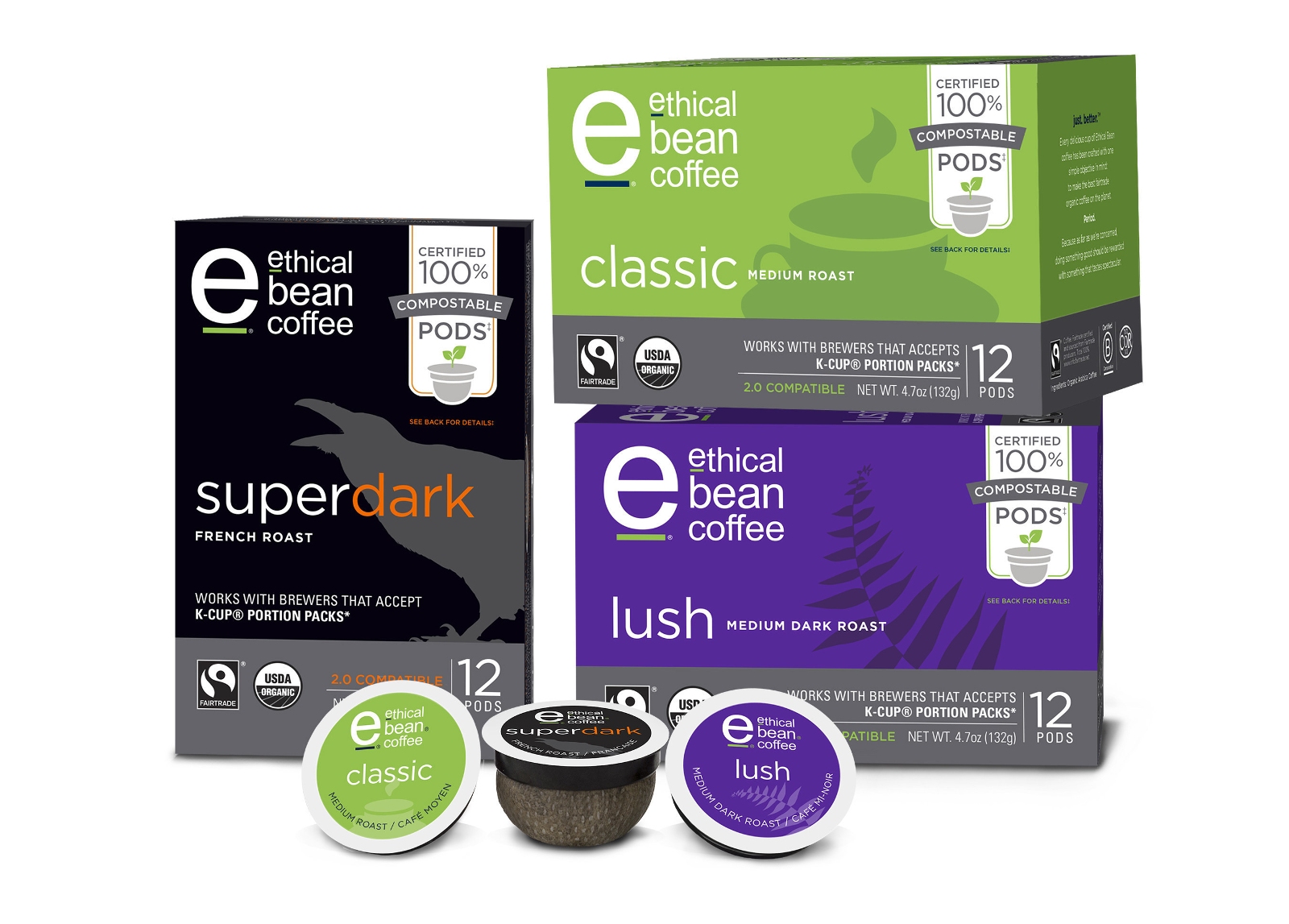 Ethical Bean’s 100% compostable single serve pods are available on Amazon and at select US retailers.