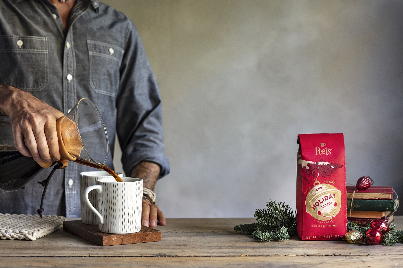 Available now and while supplies last, the annual 2019 Holiday Blend can be purchased at participating Peet’s coffee bar locations, online at www.peets.com, and at mass, club and grocery stores nationwide. Prices vary. In coffee bars and on peets.com, $18.00 USD per pound for regular and for decaf. In grocery and online, $10.99 USD per 10-ounce bag, $7.99 to $9.99 for K-cup 10-count, and $11.99 to $13.99 for K-cup 16-count.