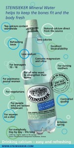 Steinsieker offers a unique mineralization with 620 milligrams of natural Calcium per liter. One liter or one bottle already covers 62% of the required daily Calcium of an adult. Steinsieker’s Calcium richness results from the specific geological formation around Steinsiek, a former spa town on the edge of the Teutoburg forest in the heart of Germany. The Calcium is 100% natural and arises from an artesian spring. This unique mineralization with the Calcium richness, and the gentle carbonation give Steinsieker its well balanced body and its refreshing taste. Everyone needs Calcium as the human body cannot produce it. It is the essential mineral for strong and healthy bones. A.R.Engel provides Steinsieker in a light and elegantly shaped PET bottle with an excellent carbon food print.