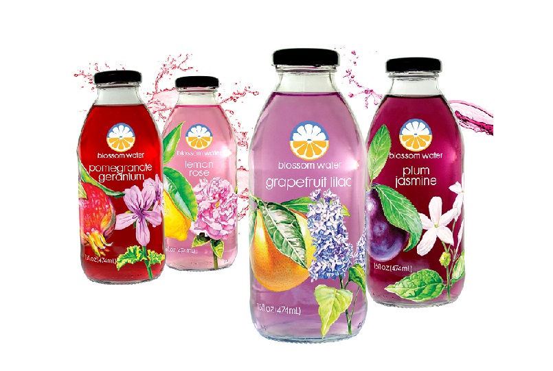 For Blossom Water, he has hand-painted striking watercolor illustrations that are botanically correct representations of the actual flowers and fruits used in our formulations. In combination with glass bottles and clear shrink sleeves that showcase the natural translucent colors of our flavours, we believe our overall presentation is that befitting a premium product. When we’re at trade shows and other venues, such differentiated packaging attracts attention among buyers, brokers, and distributors as well as among restaurant and other on-premise food service representatives. And once we’re on the shelf, it encourages those crucial first pulls by consumers.