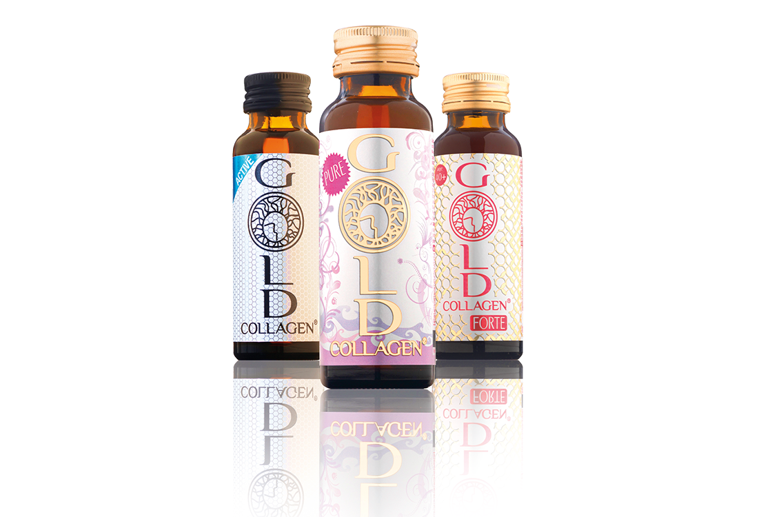 GOLD COLLAGEN® products are liquid beauty supplements, a new generation skincare solution based on a unique blend of active ingredients such as bioactive collagen peptides and hyaluronic acid, chosen for their anti-ageing benefits. Our European Patented complex has been specifically developed to deliver a potent dose of bioactive collagen peptides together several other vitamins, minerals and active ingredients to the dermis. The advanced formulation and the liquid characteristics allow maximum absorption and availability. Once transported to the dermis the active ingredients (as mentioned) reactivate fibroblast proliferation hence combating the ageing process and helping maintain healthy skin, hair and nails by enhancing natural collagen production and increasing skin hydration as well as elasticity.