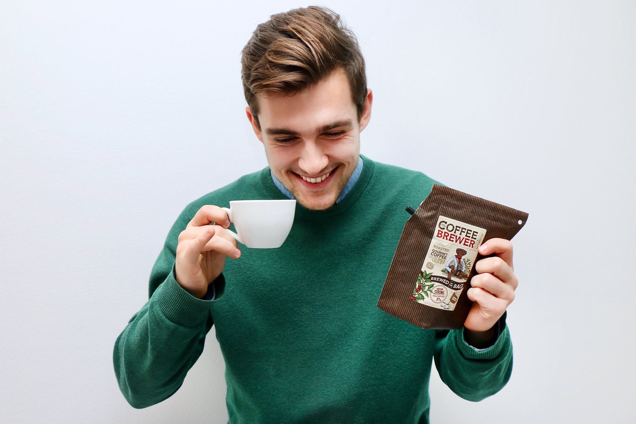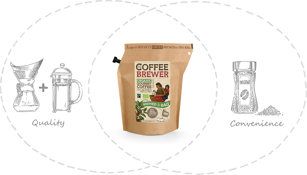 I actually came up with the idea of how to brew the high-quality coffee and convenient coffee back in 2003 and on the basis of the idea set up the company. The rough history is that at a certain point of time I ended up not having any filters for my drip filter coffee machine and I started to think that there must be a better way to brew a decent cup of coffee. So, I started experimenting with different tea bags. I cut them open and filled them with coffee grounds. This idea led to the product that we see today where we have a stand up pouch with an inside filter containing freshly ground coffee. The consumer simply has to add hot water into the pouch to brew 2 cups of rich gourmet coffee.