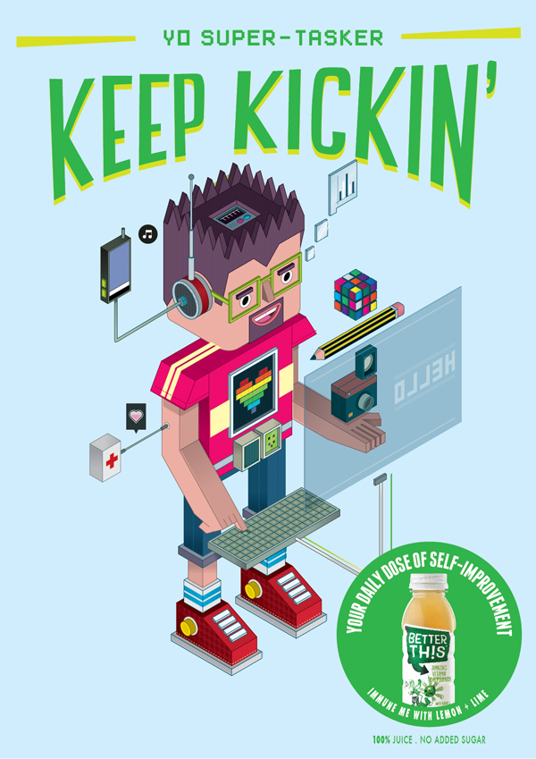Whole line of the drinks looks very fresh and playful since the first time you see it. The bottle of 295 ml looks very convenient either to give to a child or to put it in a handbag. Design of all four drinks goes perfect together, the idea to make it saucy and at the same time attractive to a very wide range of consumers.