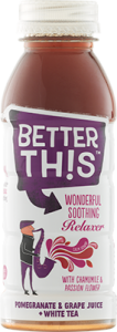 characteristic taste of it that is provided by a high content of tannins in the pomegranate juice. While tasting it, you immediately feel that the drink has 100% of juice inside. The functionality is coming from chamomile extract. You can feel a hint of herbs while tasting it, but its not bothering too much and cannot be abstracted very strongly and is very delicately combined together.