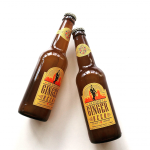 Sir Ginger’s Ginger Beer. A traditional non-alcoholic drink made with ginger extracts and natural flavourings. Nicely designed glass bottle packaging communicates a clear message of a well-known and popular ginger beer. This type of packaging also provides an image of a premium product.
