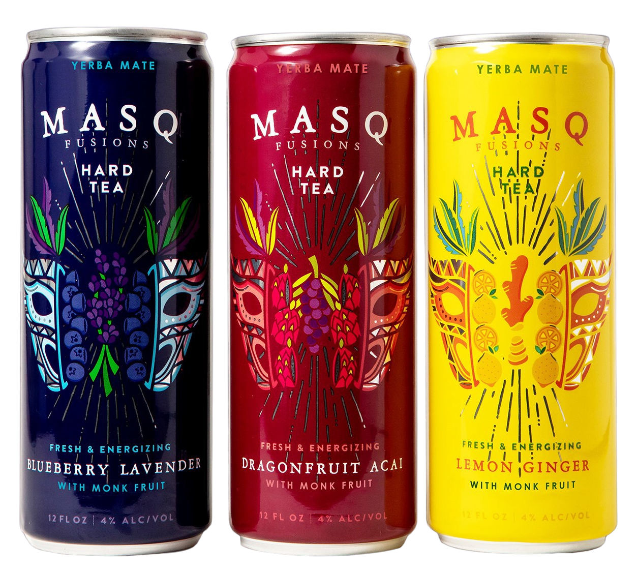 Masq Fusions come in brightly colored 12oz sleek cans packaged in convenient 4-packs.
